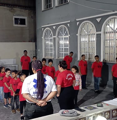 Por meio de atividades práticas e educativas, os participantes aprendem sobre primeiros socorros, prevenção de acidentes, cidadania, trabalho em equipe e disciplina.
